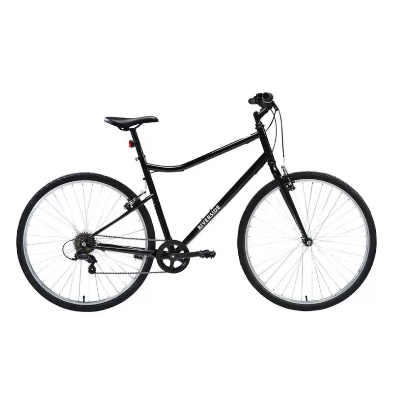 È una bici nera con la scritta bianca Riverside, ha i parafanghi sia davanti che dietro, ha sul telaio uno sticker sulla Palestina.