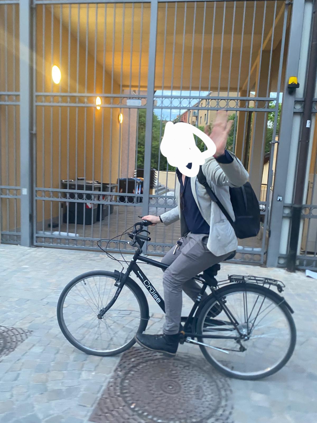 City bike nera da uomo con la scritta CRUISE in bianco, copricatena in plastica rotta, portapacchi posteriore,luce posteriore rotta