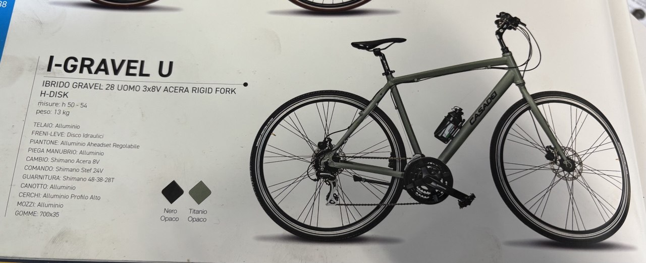 descrizione / segni particolari: telaio gravel in alluminio con manubrio mobile e freni a disco idraulici; colore completamente nera; accessoriata con parafanghi davanti e dietro + cestino quadrato davanti + cavalletta; era un po' sporca di fango, soprattutto sulle ruote; 2 catenacci, una grossa catena con copertura attaccata al cestino e un kryptonite a U attaccato al telaio e con cui era legata al palo.
